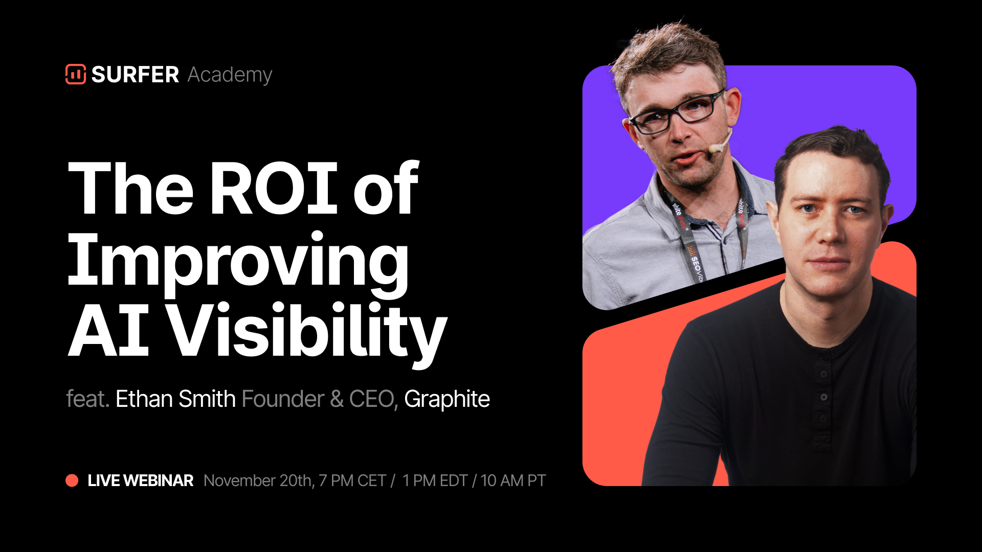 Michal Suski, Head of Innovation at Surfer, is hosting a live demo on December 10th, 6 PM CET / 12 PM ET / 9 AM PT to show you the streamlined content production system that replaces manual work with guaranteed results.