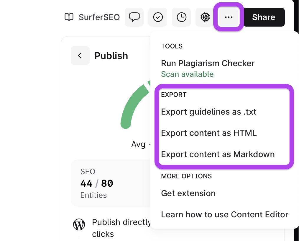Anyway… from here I can add internal links to finalize the post (using the “Insert internal links” button). Then I can export to WordPress for publishing in one click: