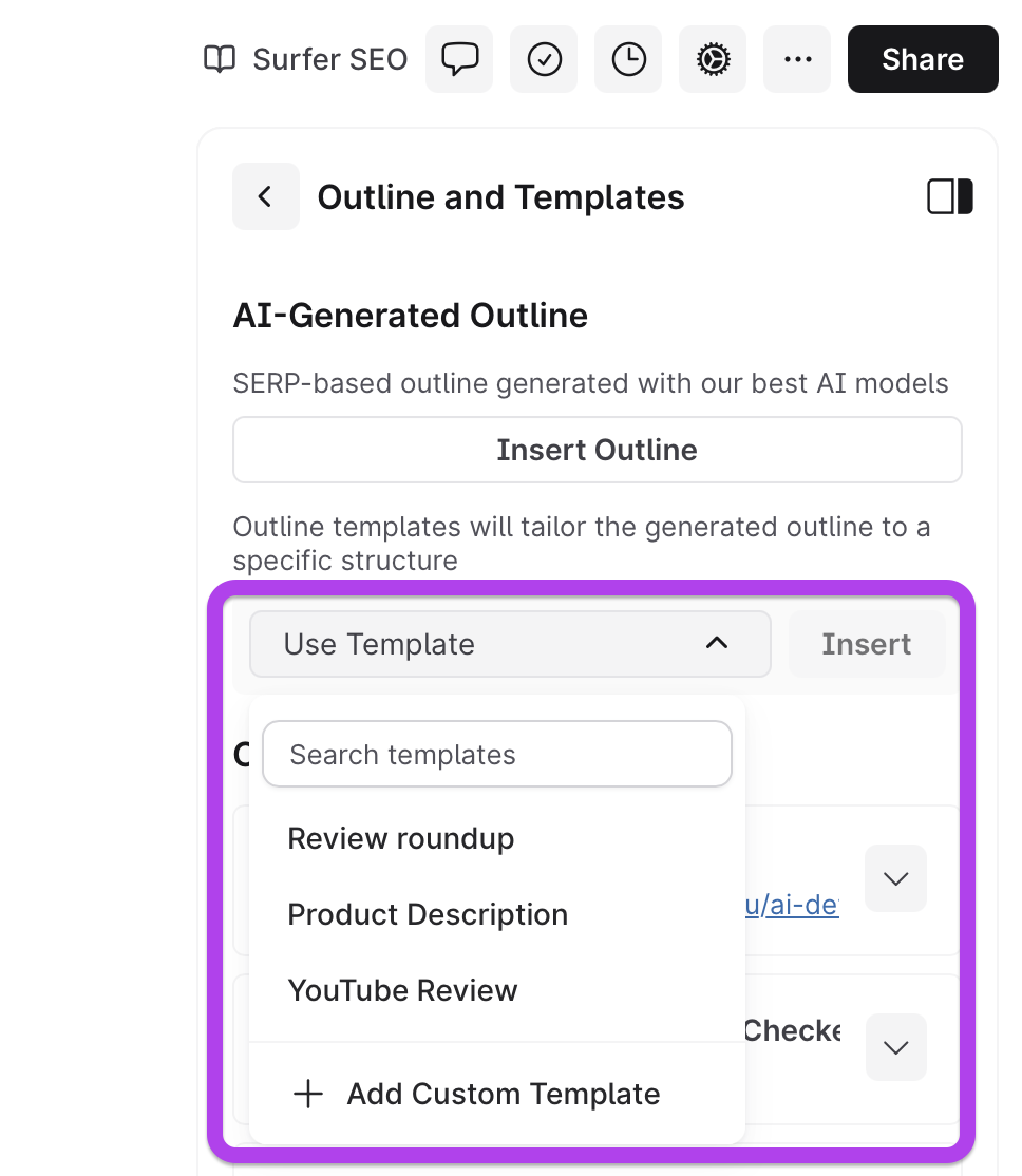 ... or create a custom outline template and use it to generate personalized outlines for any type of content: product descriptions, landing pages, or even YouTube reviews.